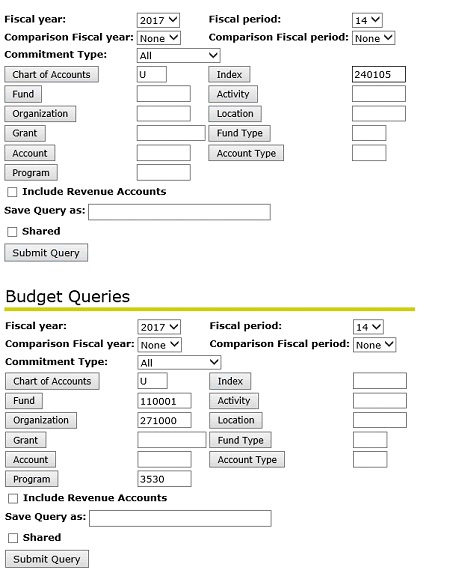 | Name | Code | Index | Fund | Orgn | Acct | Prog |